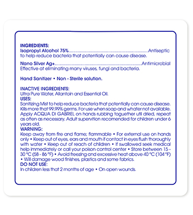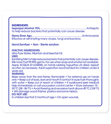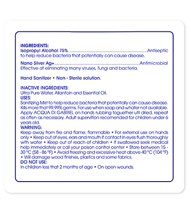 - Acqua Di Gabriel Sanitizing Mist is an antimicrobial, antibacterial, antiseptic sanitizing formula
